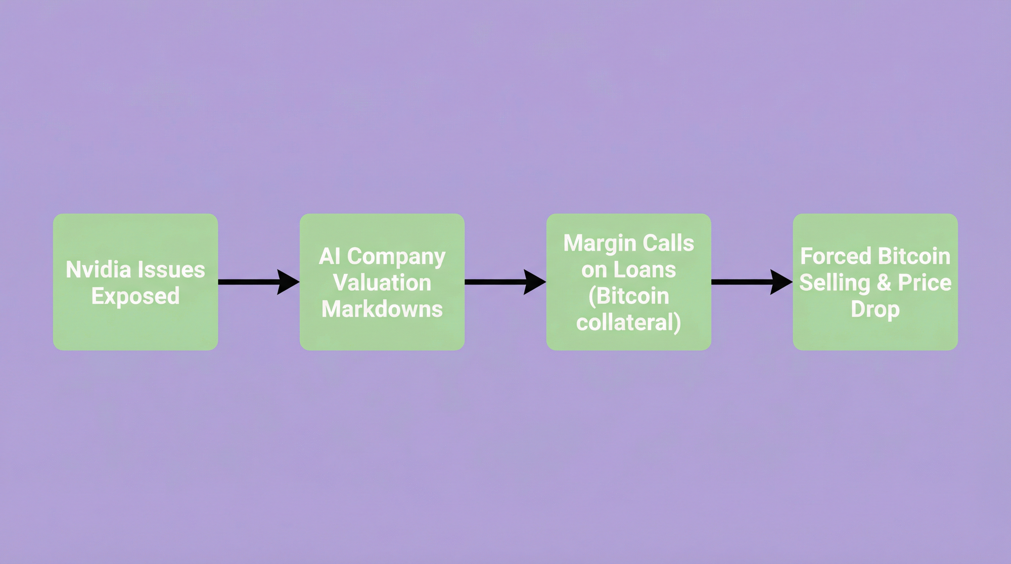 这些减记会触发以比特币为抵押的贷款追加保证金通知。清算级联随之而来。市场微观结构分析表明,234亿美元的强制比特币抛售将把价格推至约52,000美元。