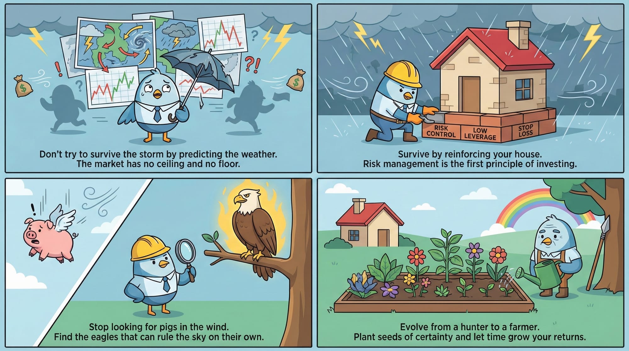 "在狂风暴雨中不要靠预测天气而生存,而要靠加固房子而生存。"